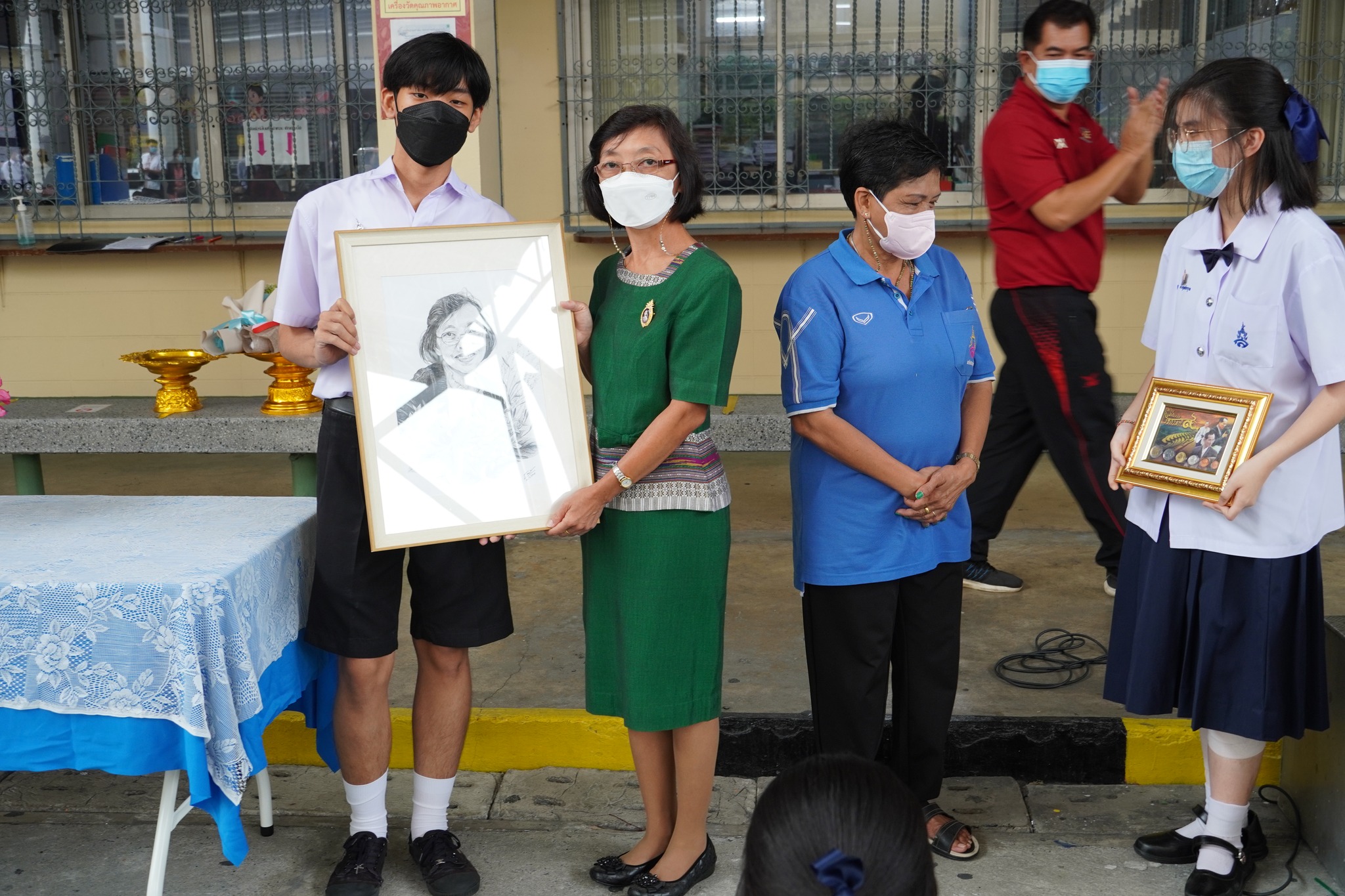 Demonstration School of Suan Sunandha Rajabhat University Organize activities to show the spirit to the retirees for the year 2022, with two retired officials, Ajarn Siriphan Klaiklueng and Mrs. Sunan Semanit at the stadium in front of Building 15, with Ajarn Chuchakaj Chulert, Deputy Director of Administration. Giving bouquets to retirees and the student committee representing the students expressing their generosity.