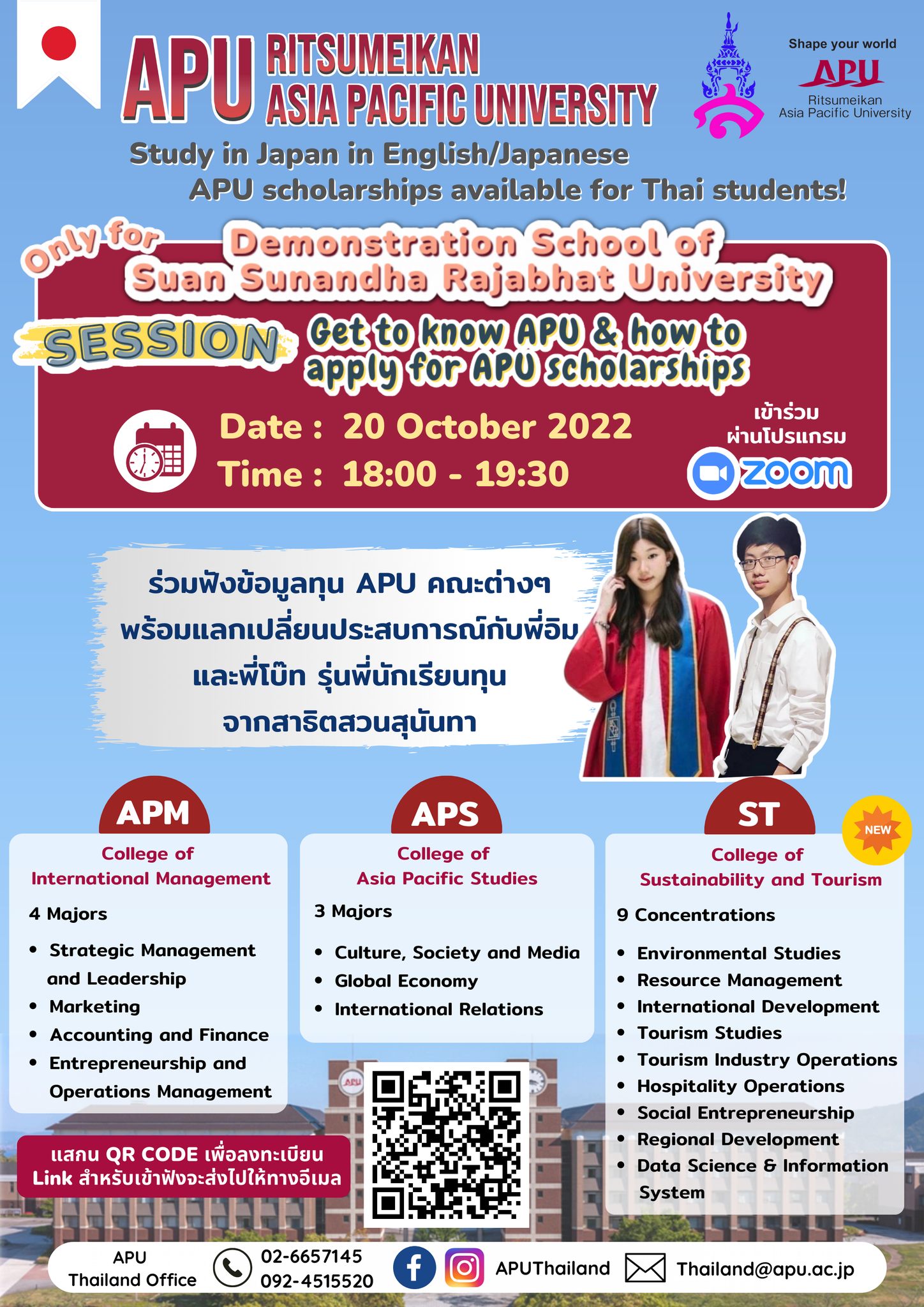 สอบถามข้อมูลเพิ่มเติมติดต่อ APU Thailand Office