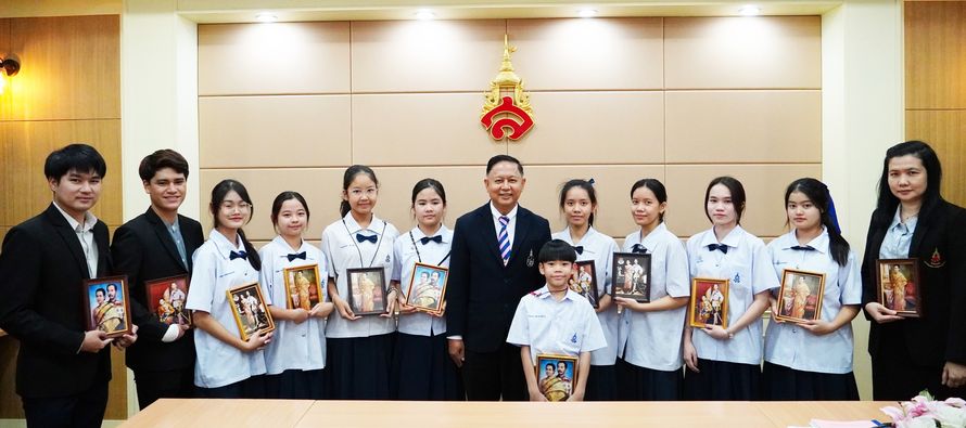 Assoc. Prof. Dr. Somkiat Korbuakaew, Director of Demonstration School of Suan Sunandha Rajabhat University Give souvenirs to teachers and students who are representatives to give interviews in external education quality assessments. From the committee of the Office for Standardization and Educational Quality Assessment (Public Organization) on Tuesday, February 14, 2023.