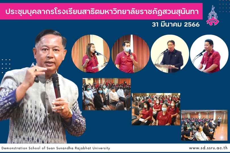 Friday, March 31, 2023, personnel meeting of Suan Sunandha Rajabhat University Demonstration School To prepare for the opening of the basic adjustment course Academic Year 2023, with Assoc. Prof. Dr. Somkiat Korbuakaew, Director, presiding over the meeting.