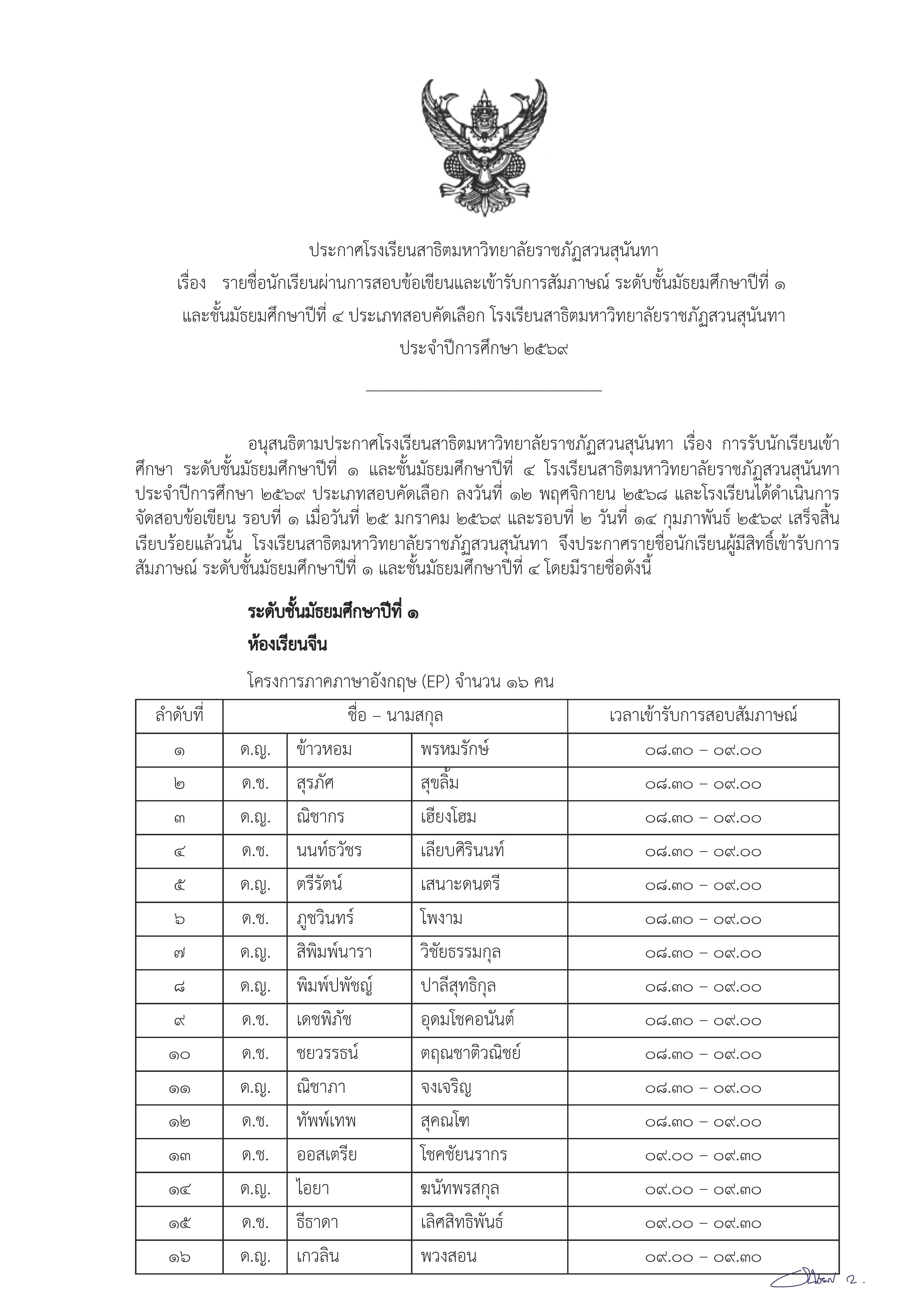 Announcement: List of Candidates Qualified for the InterviewAcademic Year 2026