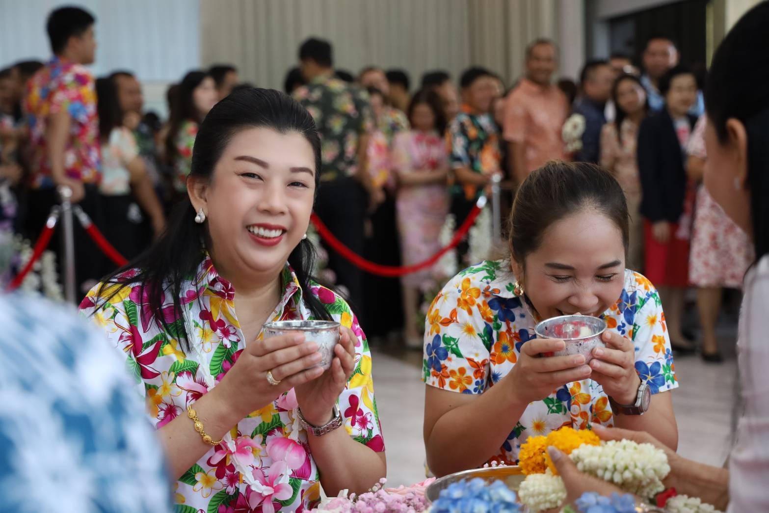 The ceremony included the bathing ritual of the Buddha Sunandhakarn image and the royal statue of Her Royal Highness Princess Sunanda Kumariratana, as well as the traditional water-pouring ceremony to seek blessings from the university executives.