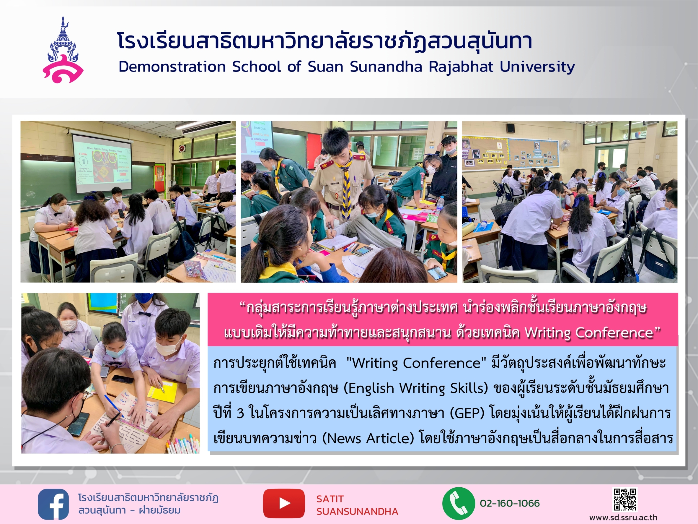 หน้าหลัก > ข่าว > ข่าวประชาสัมพันธ์ > กลุ่มสาระการเรียนรู้ภาษาต่างประเทศ นำร่องพลิกชั้นเรียนภาษาอังกฤษ แบบเดิมให้มีความท้าทายและสนุกสนาน ด้วยเทคนิค Writing Conference