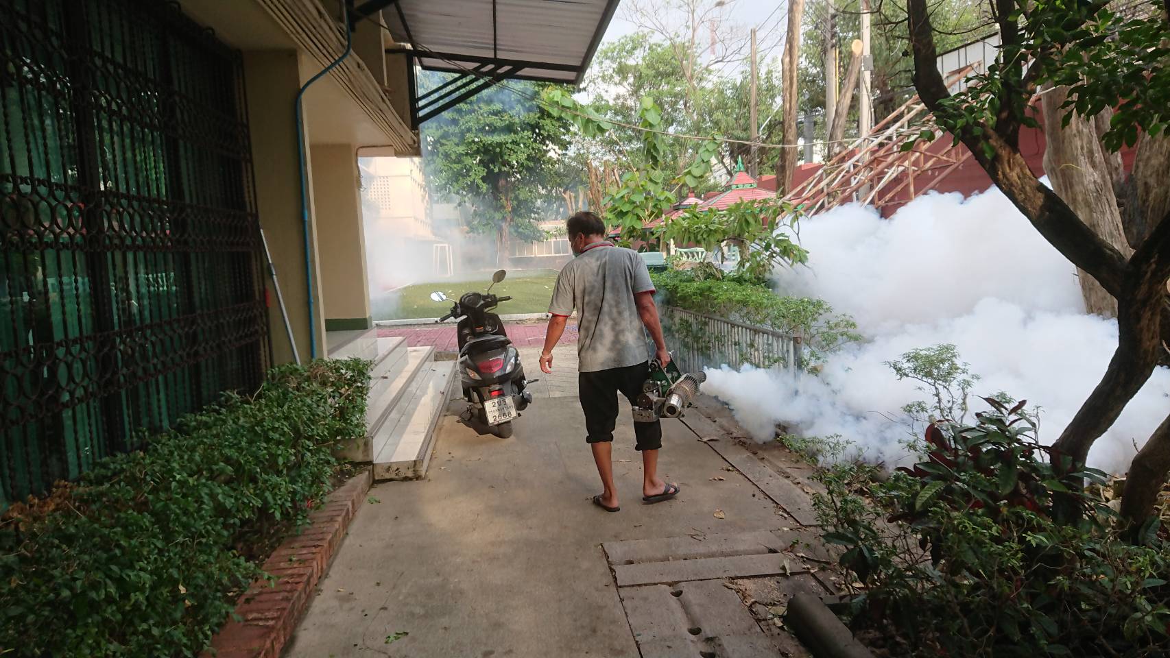 วันศุกร์ที่ 7 พฤษภาคม 2564 ฝ่ายอาคารสถานที่ ควบคุมการดำเนินการกำจัดยุงและแมลง บริเวณโดยรอบบริเวณโรงเรียนสาธิตมหาวิทยาลัยราชภัฏสวนสุนันทา