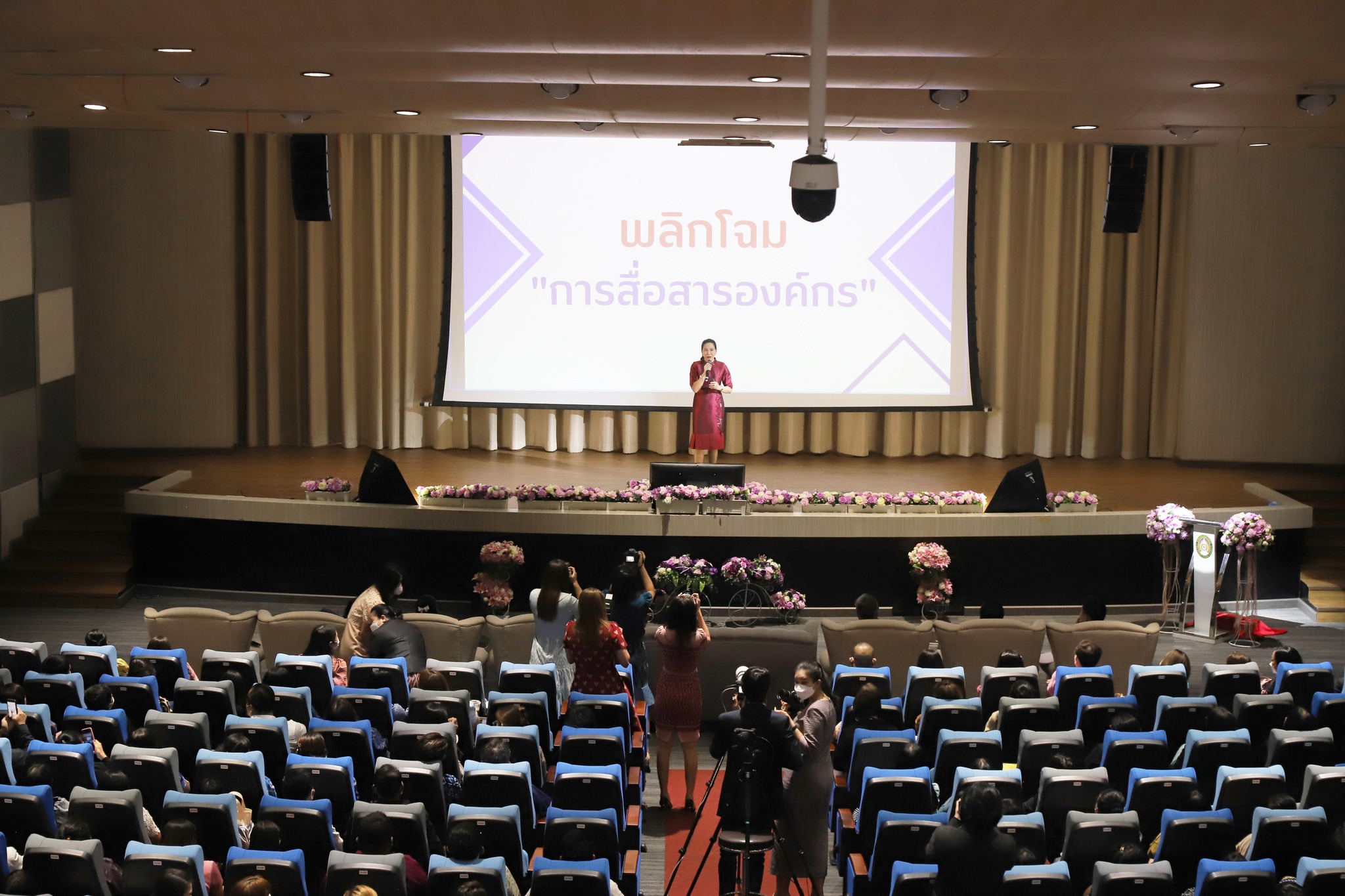 รองศาสตราจารย์ ดร.ชุติกาญจน์ ศรีวิบูลย์ บรรยายในหัวข้อ “พลิกโฉม การสื่อสารองค์กร” เพื่อให้ทุกคนมีบทบาทในความเป็นนักประชาสัมพันธ์ขององค์กรร่วมกัน ส่งเสริมและพัฒนาการสื่อสารประชาสัมพันธ์ นำไปสู่ความเป็นมหาวิทยาลัยดิจิทัลและเอตทัคคะที่มีเอกลักษณ์”