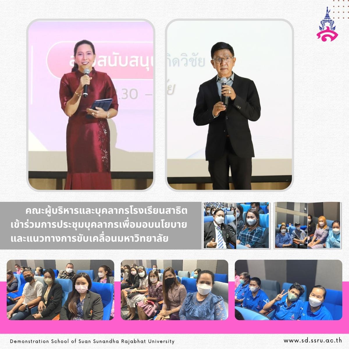 บุคลากรโรงเรียนสาธิตมหาวิทยาลัยราชภัฏสวนสุนันทา เข้าร่วมการประชุมบุคลากรเพื่อมอบนโยบายและแนวทางการขับเคลื่อนมหาวิทยาลัย” ประจำปีงบประมาณ พ.ศ.2566