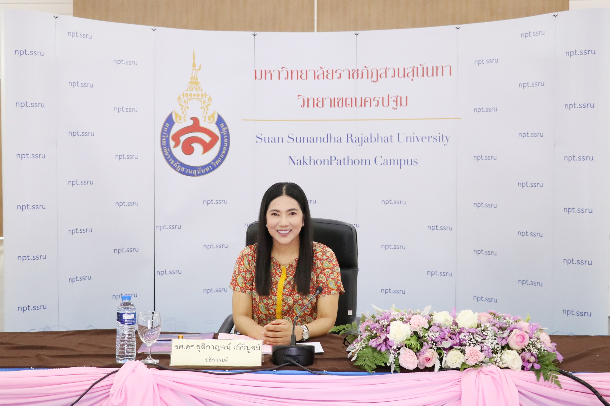 วันที่ 10 เมษายน 2566 รองศาสตราจารย์ ดร.สมเกียรติ กอบัวแก้ว ผู้อำนวยการโรงเรียนสาธิต เข้าร่วมประชุมคณะกรรมการบริหารมหาวิทยาลัยราชภัฏสวนสุนันทา ครั้งที่ 4/2566 โดยมี รองศาสตราจารย์ ดร.ชุติกาญจน์ ศรีวิบูลย์ อธิการบดีมหาวิทยาลัยราชภัฏสวนสุนันทา เป็นประธานในที่ประชุม พร้อมด้วยคณะกรรมการบริหารมหาวิทยาลัยฯ ร่วมประชุมคณะกรรมการบริหารมหาวิทยาลัยราชภัฏสวนสุนันทา ณ ห้องประชุมใหญ่ (4-201) อาคารเรียนรวมอเนกประสงค์และศูนย์อาหาร มหาวิทยาลัยราชภัฏสวนสุนันทา วิทยาเขตนครปฐม