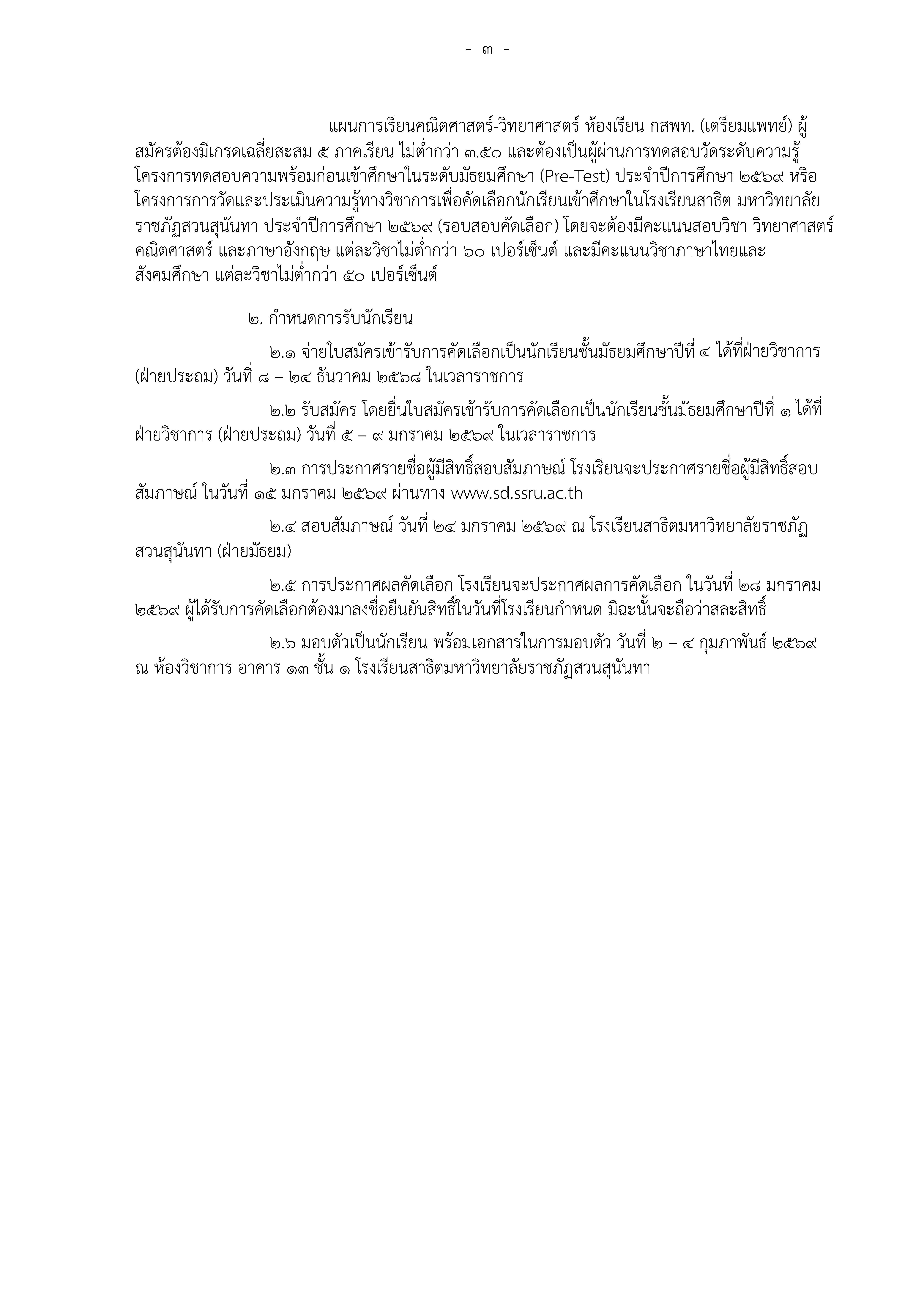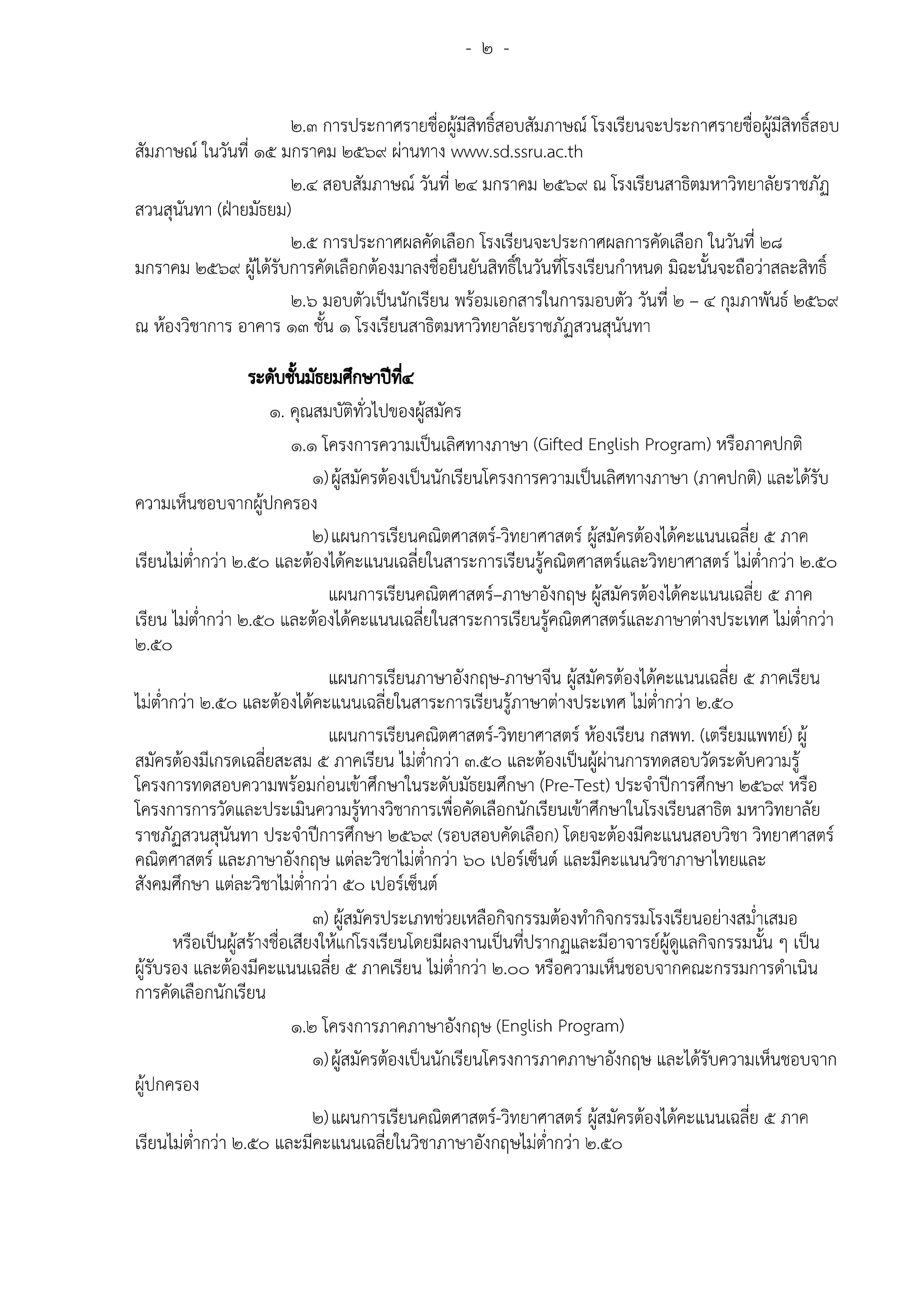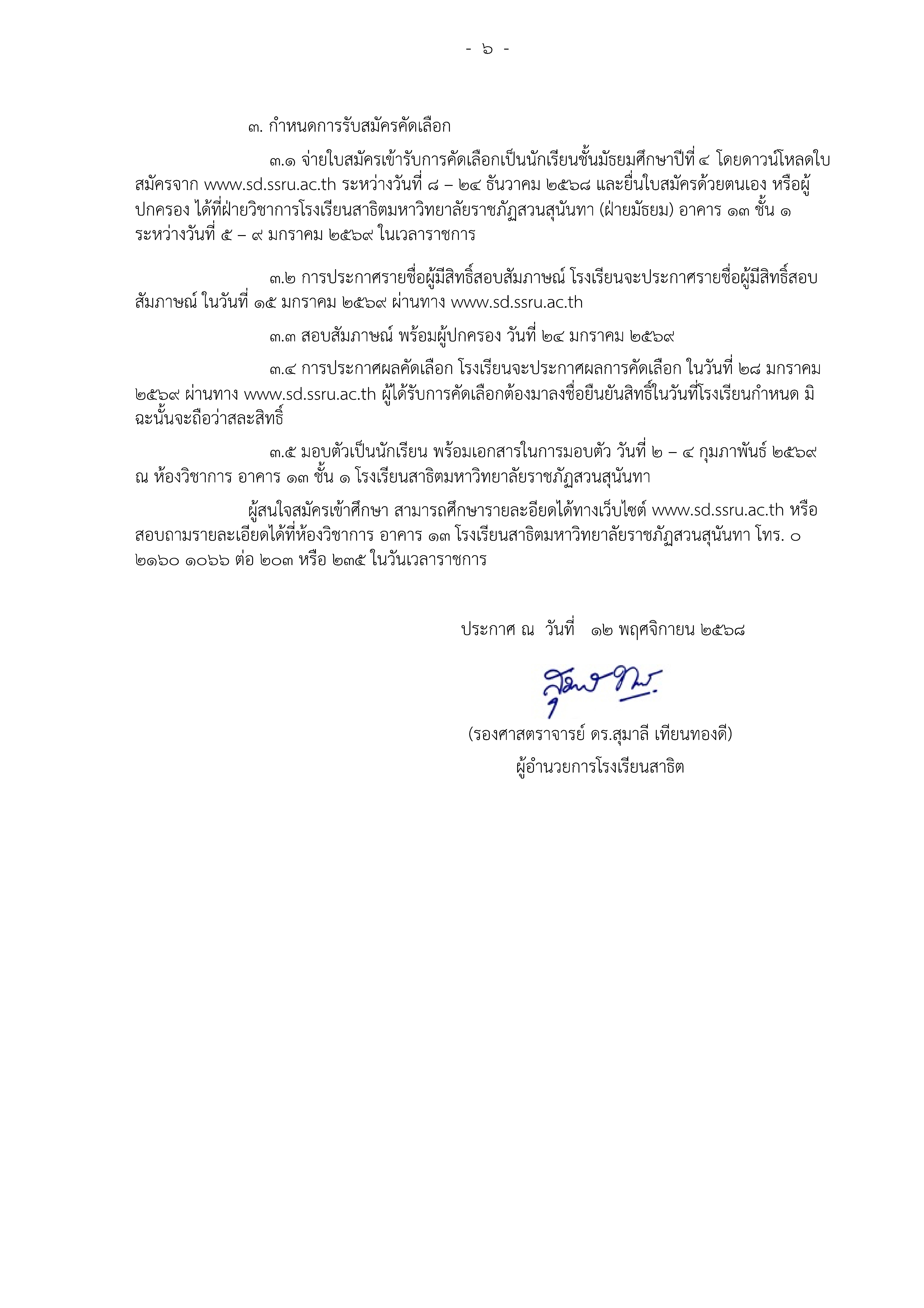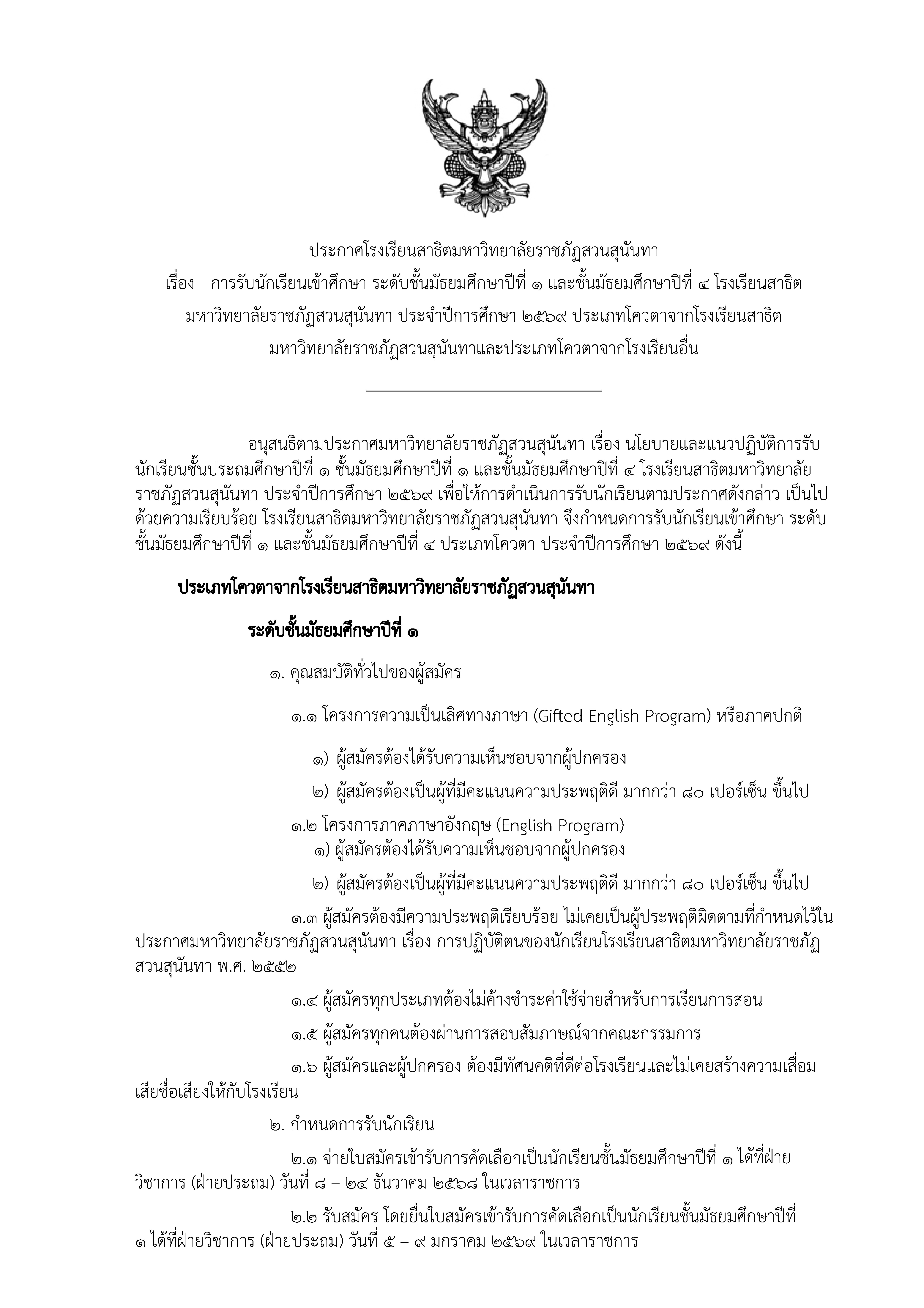 ประกาศ การรับนักเรียนเข้าศึกษา