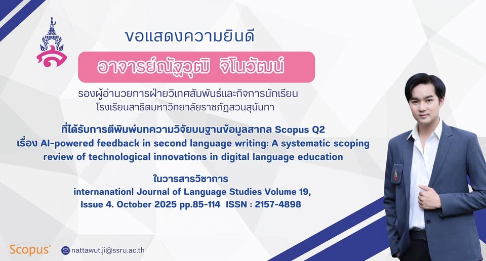 ในโอกาสที่ผลงานวิจัย ได้รับการตีพิมพ์ในวารสารระดับนานาชาติ Scopus Q2