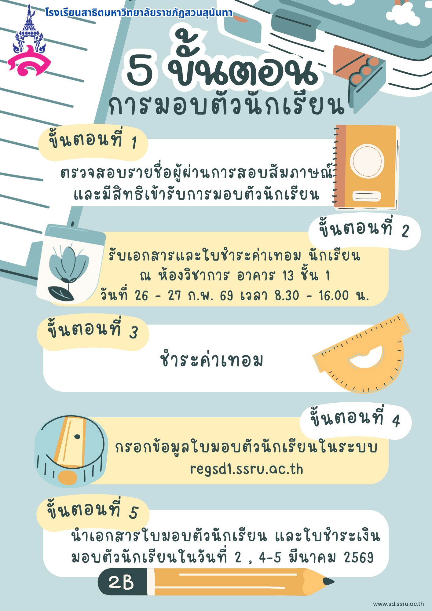 > ผลการคัดเลือกนักเรียนเข้าศึกษา ระดับชั้น ม.1 และ ม.4 ประเภทสอบคัดเลือก ประจำปีการศึกษา 2569