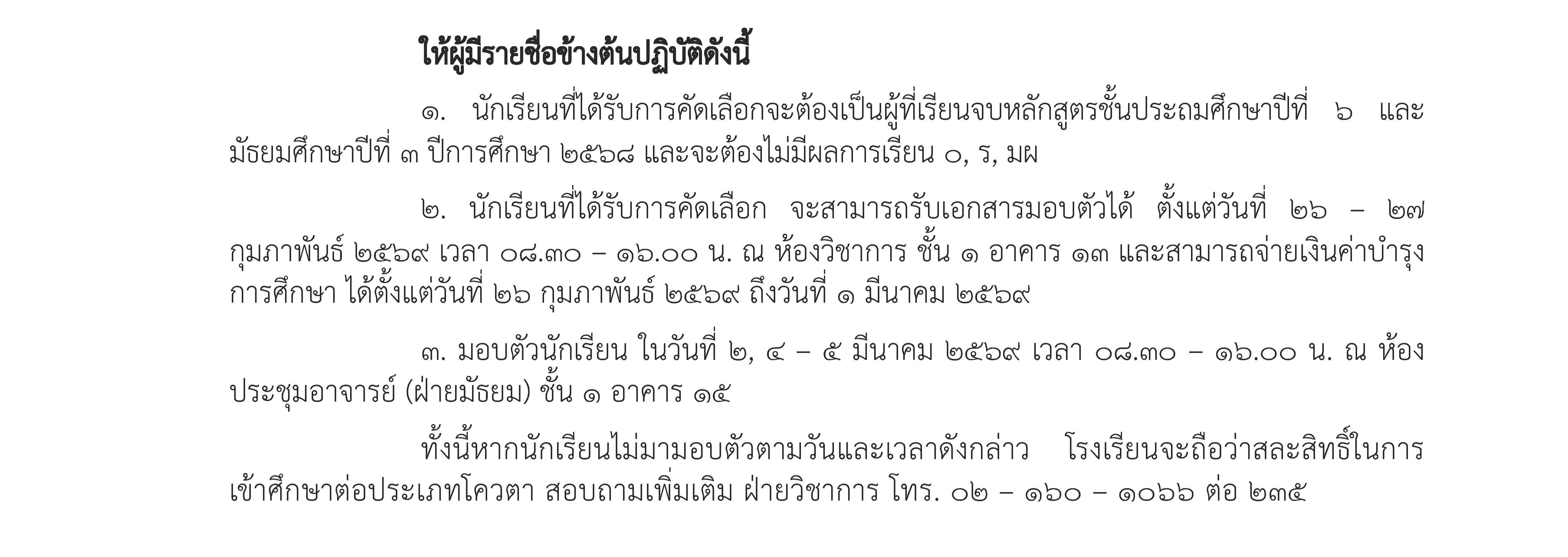 ผลการคัดเลือกนักเรียนเข้าศึกษา ระดับชั้น ม.1 และ ม.4 ประเภทสอบคัดเลือก ประจำปีการศึกษา 2569.pdf