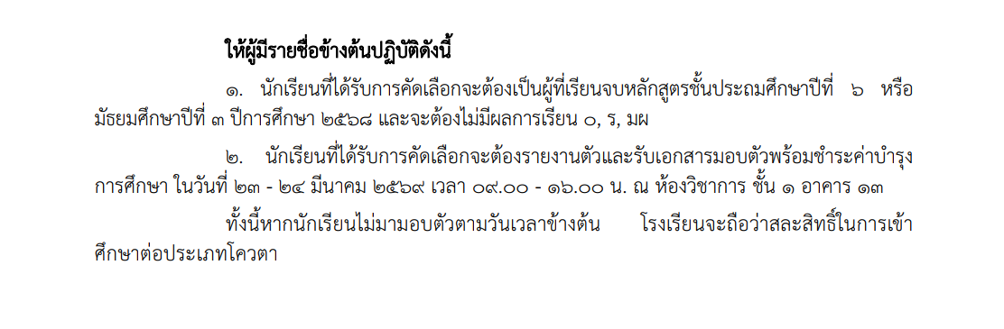> ผลการคัดเลือกนักเรียนเข้าศึกษา ม.1 และ ม.4 (รอบพิเศษ) ประจำปีการศึกษา 2569