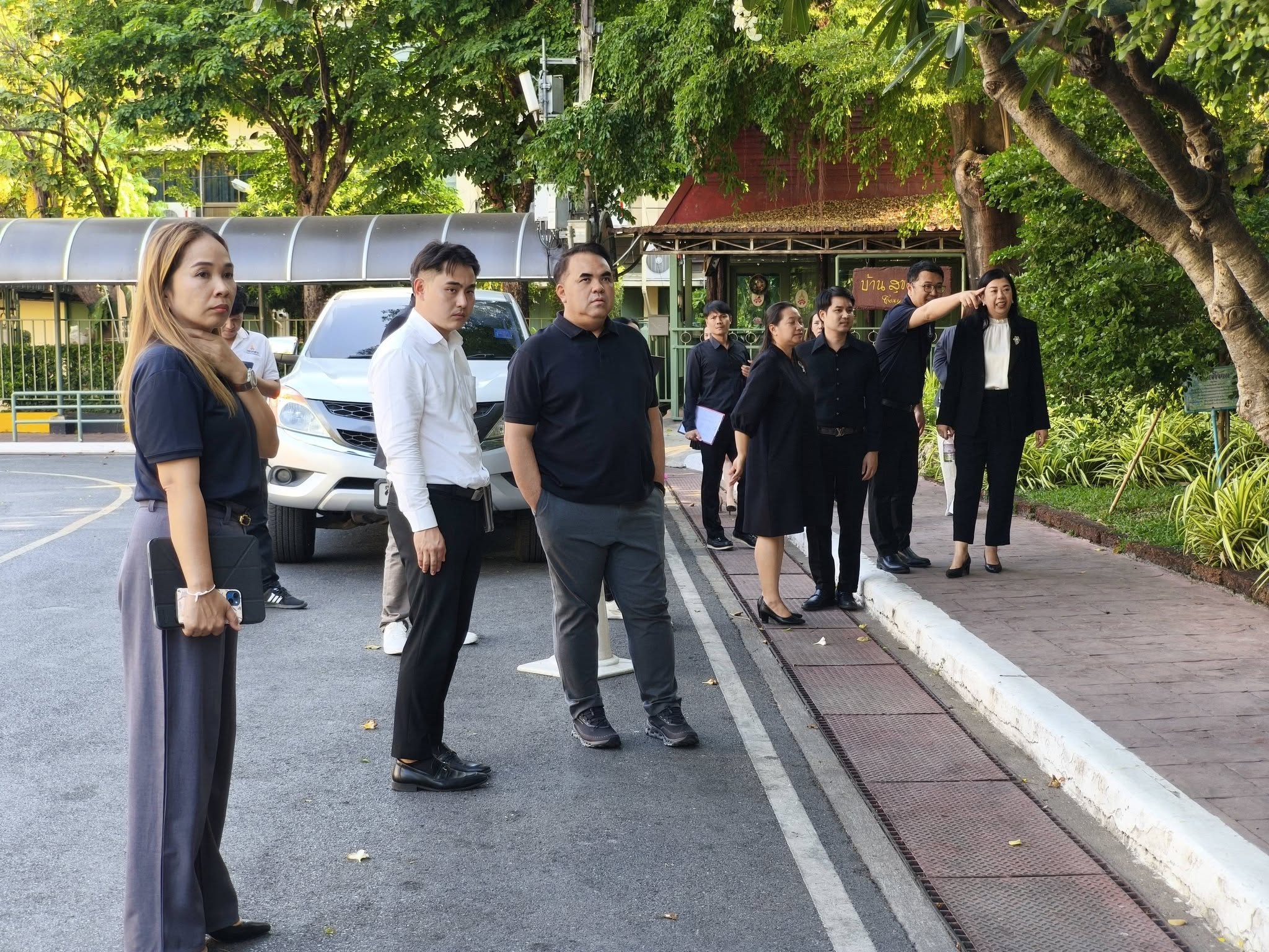 รองศาสตราจารย์ ดร.คมสัน โสมณวัตร รองอธิการบดีฝ่ายบริหาร มหาวิทยาลัยราชภัฏสวนสุนันทา ลงพื้นที่สำรวจโรงเรียนสาธิตฯ ในการปรับสภาพแวดล้อมและภูมิทัศน์บริเวณหน้าโรงเรียนสาธิตฯ เพื่ออำนวยความสะดวกในการจราจรและปลอดภัยให้กับผู้ปกครองและนักเรียนโรงเรียนสาธิตฯ