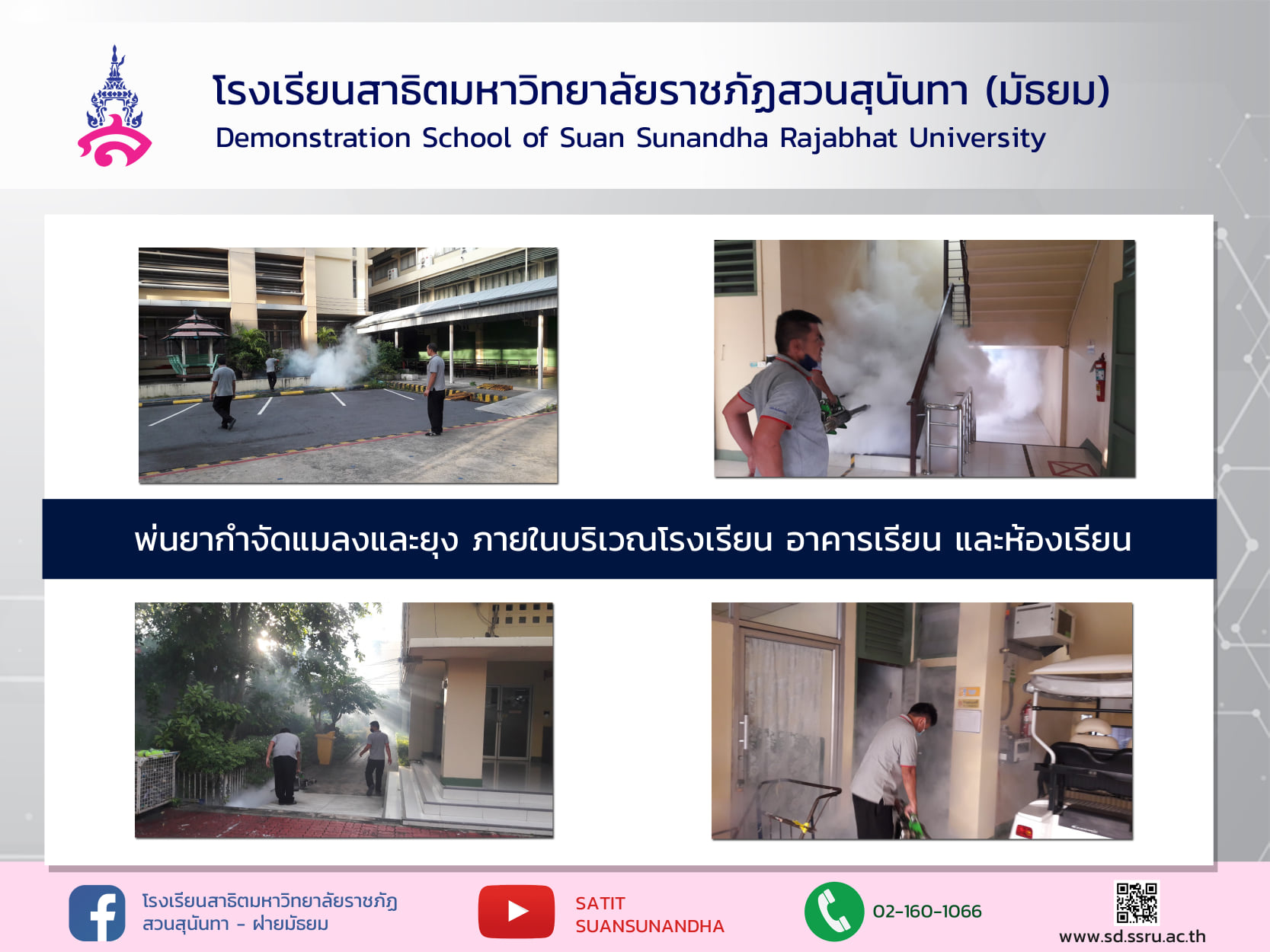 เมื่อวันศุกร์ที่ 11 กันยายน 2563 ฝ่ายอาคารสถานที่ ได้ดำเนินการให้บริษัทกำจัดแมลง ทำการพ่นควันเพื่อกำจัดแมลงและยุง ภายในบริเวณโรงเรียน อาคารเรียน ซึ่งได้ดำเนินการเป็นประจำทุกเดือน