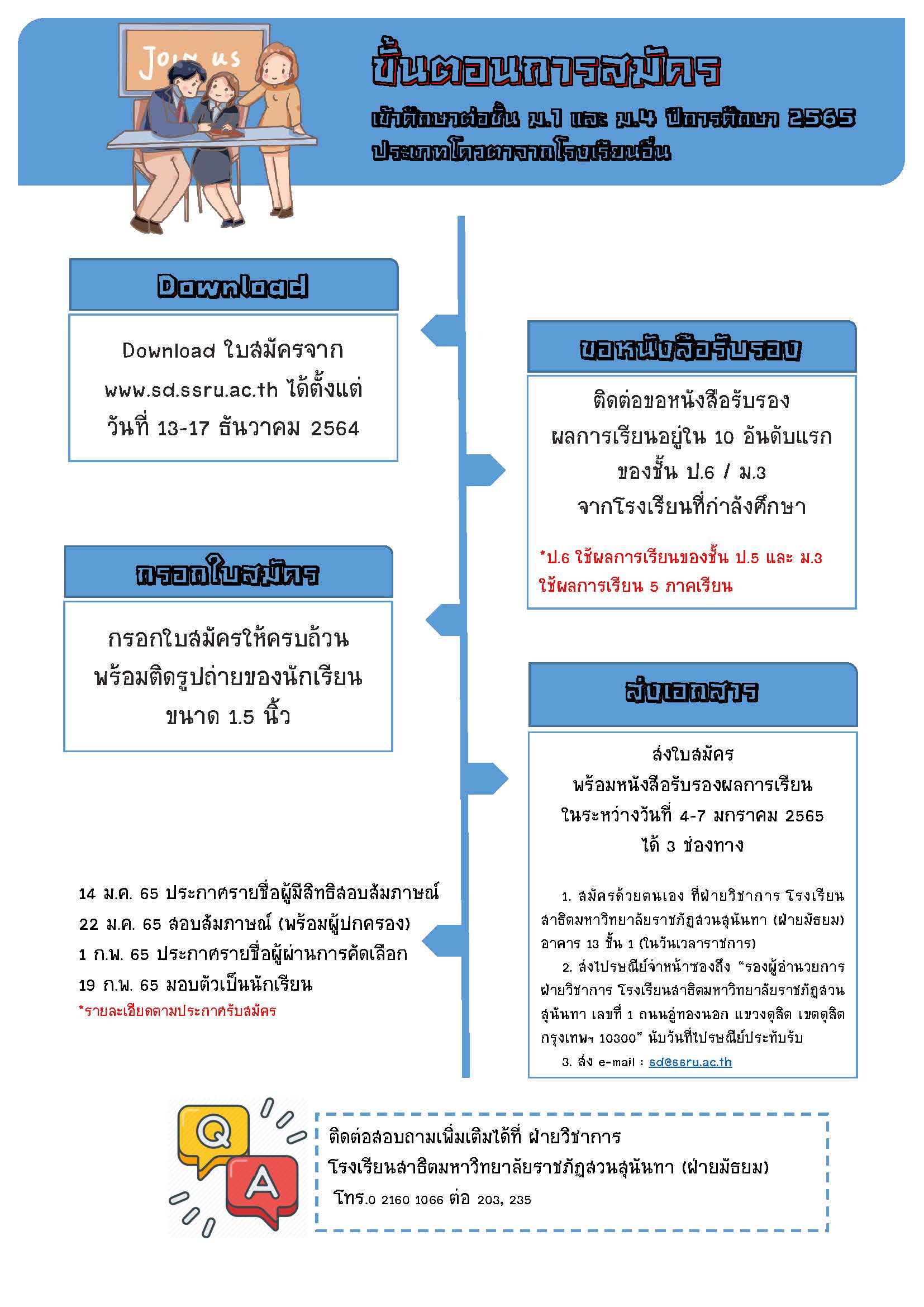 ดาวน์โหลดใบสมัคร ม.1 ประเภทโควตา จากโรงเรียนอื่นดาวน์โหลดใบสมัคร ม.4 ประเภทโควตา จากโรงเรียนอื่นเอกสารประกอบ การรับสมัครปี 2565 ประเภทโควตา.pdf