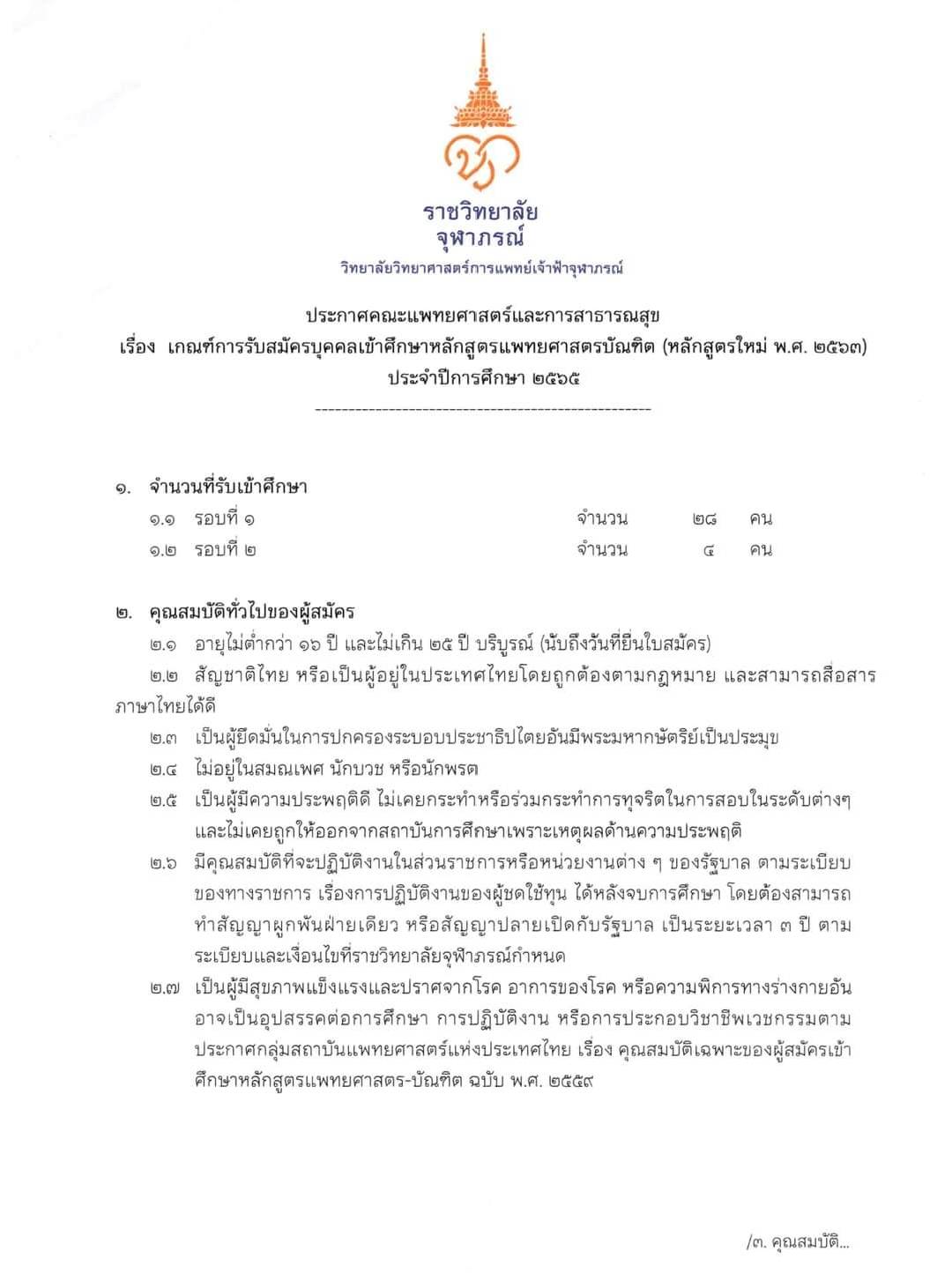 เกณฑ์การรับสมัครเข้าศึกษาหลักสูตรแพทยศาสตรบัฒฑิต วิทยาลัยวิทยาศาสตร์การแพทย์เจ้าฟ้าจุฬาภรณ์.pdf