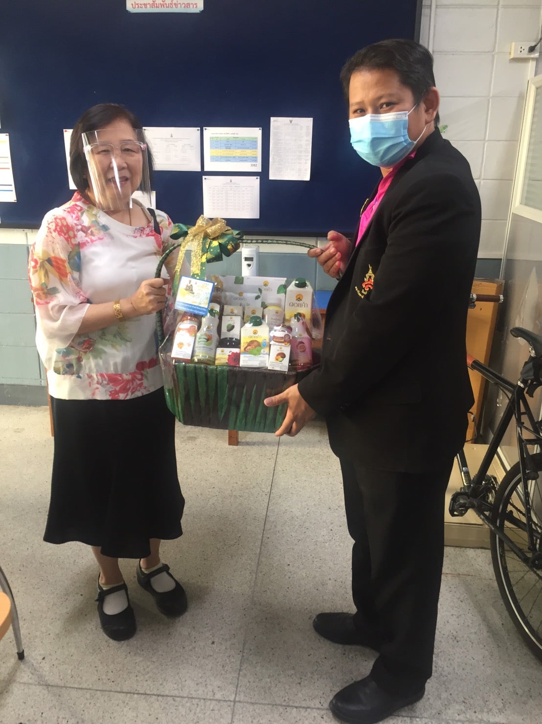 โรงเรียนสาธิตมหาวิทยาลัยราชภัฏสวนสุนันทา โดย อาจารย์ชูฉกาจ ชูเลิศ และ อาจารย์ ดร.ภูวิชญ์ งิ้วลาย เป็นตัวแทนผู้อำนวย มอบกระเช้าของขวัญปีใหม่ให้แด่ ผศ.รวีวรรณ ศรีเพ็ญ กรรมการบริหารสมาคมผู้ปกครองและครูฯ และ พลตรีหญิง ปาณฑรา มีนะกนิษฐ นายกสมาคมศิษย์เก่าฯ เนื่องในโอกาสส่งท้ายปีเก่าต้อนรับปีใหม่ 2564