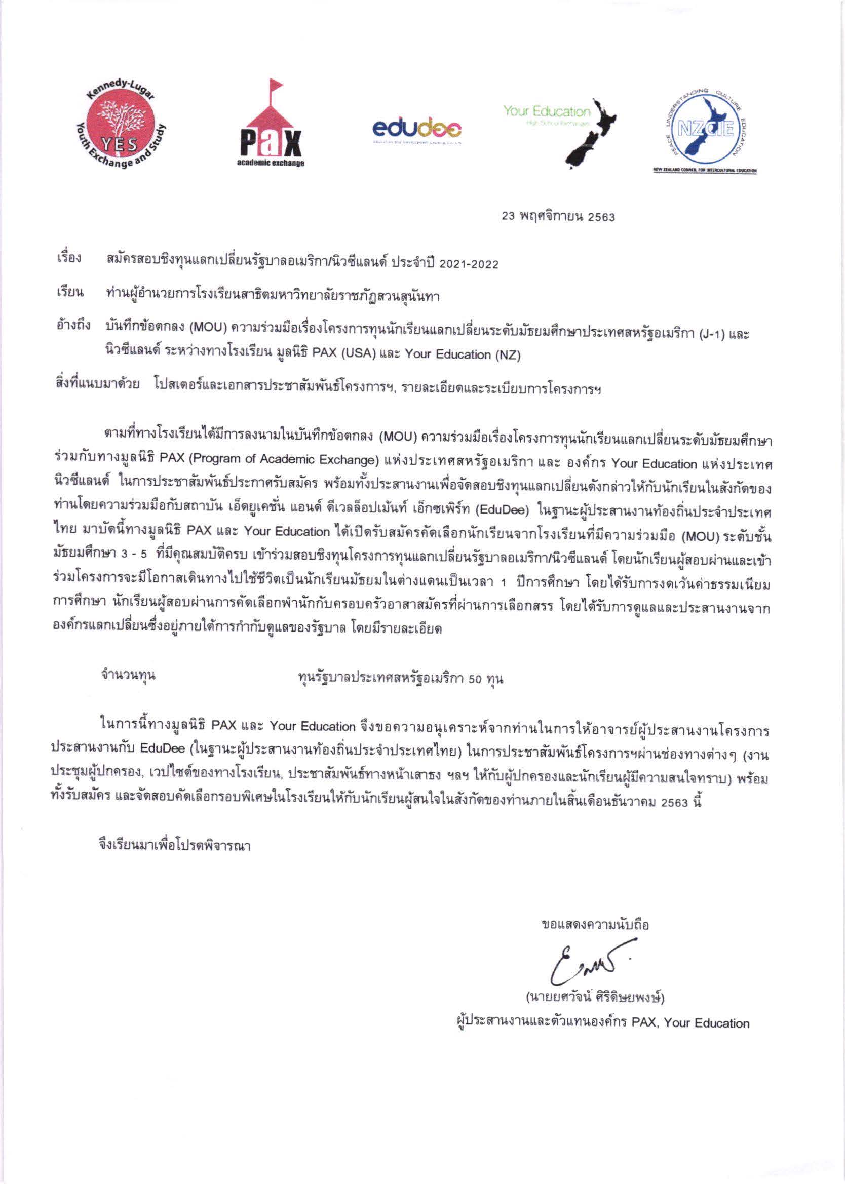 สมัครสอบชิงทุนแลกเปลี่ยนรัฐบาลอเมริกา/นิวซีแลนด์ ประจำปี 2021-2022