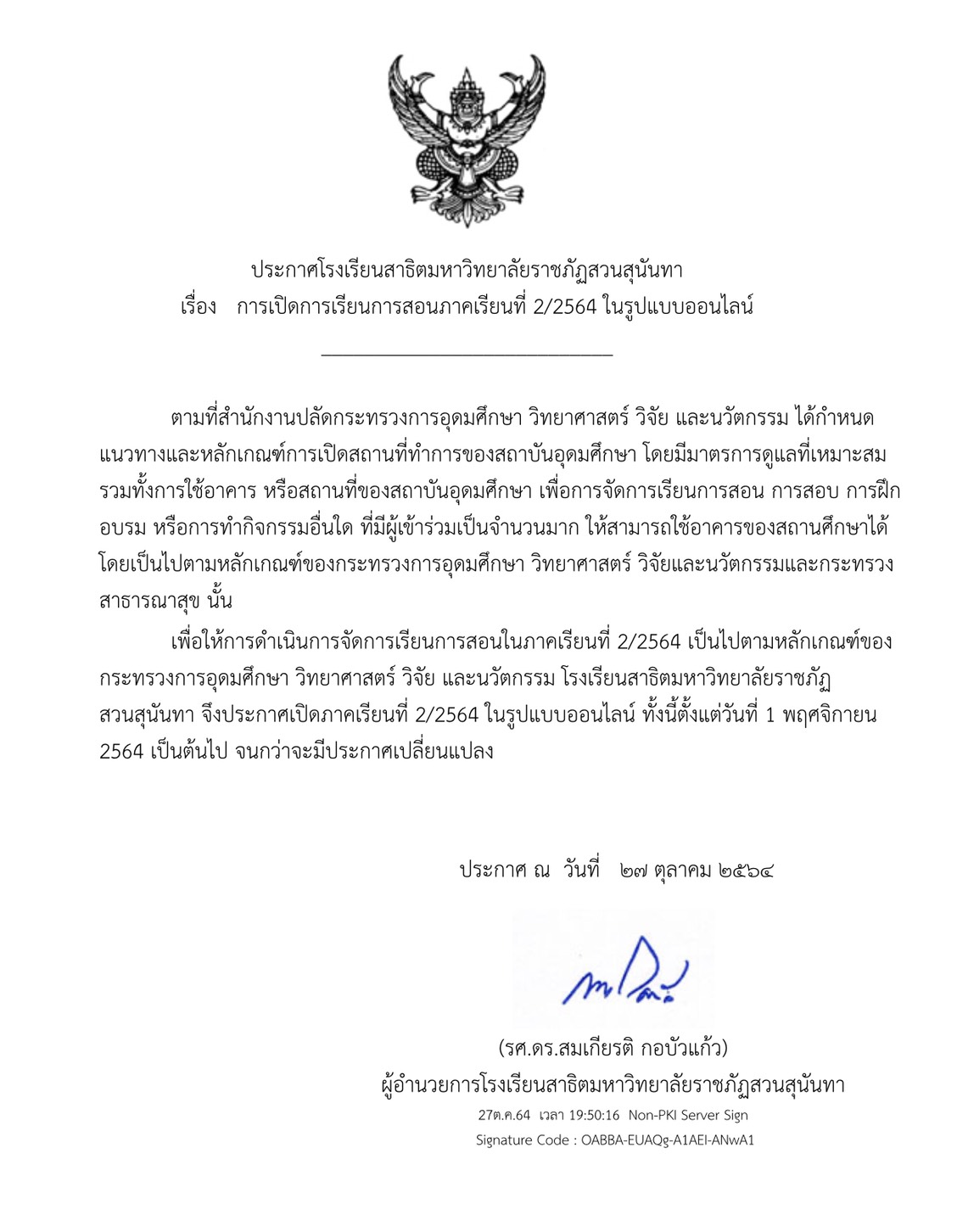 ประกาศ เรื่อง การเปิดการเรียนการสอนภาคเรียนที่ 22564 ในรูปแบบออนไลน์.pdf