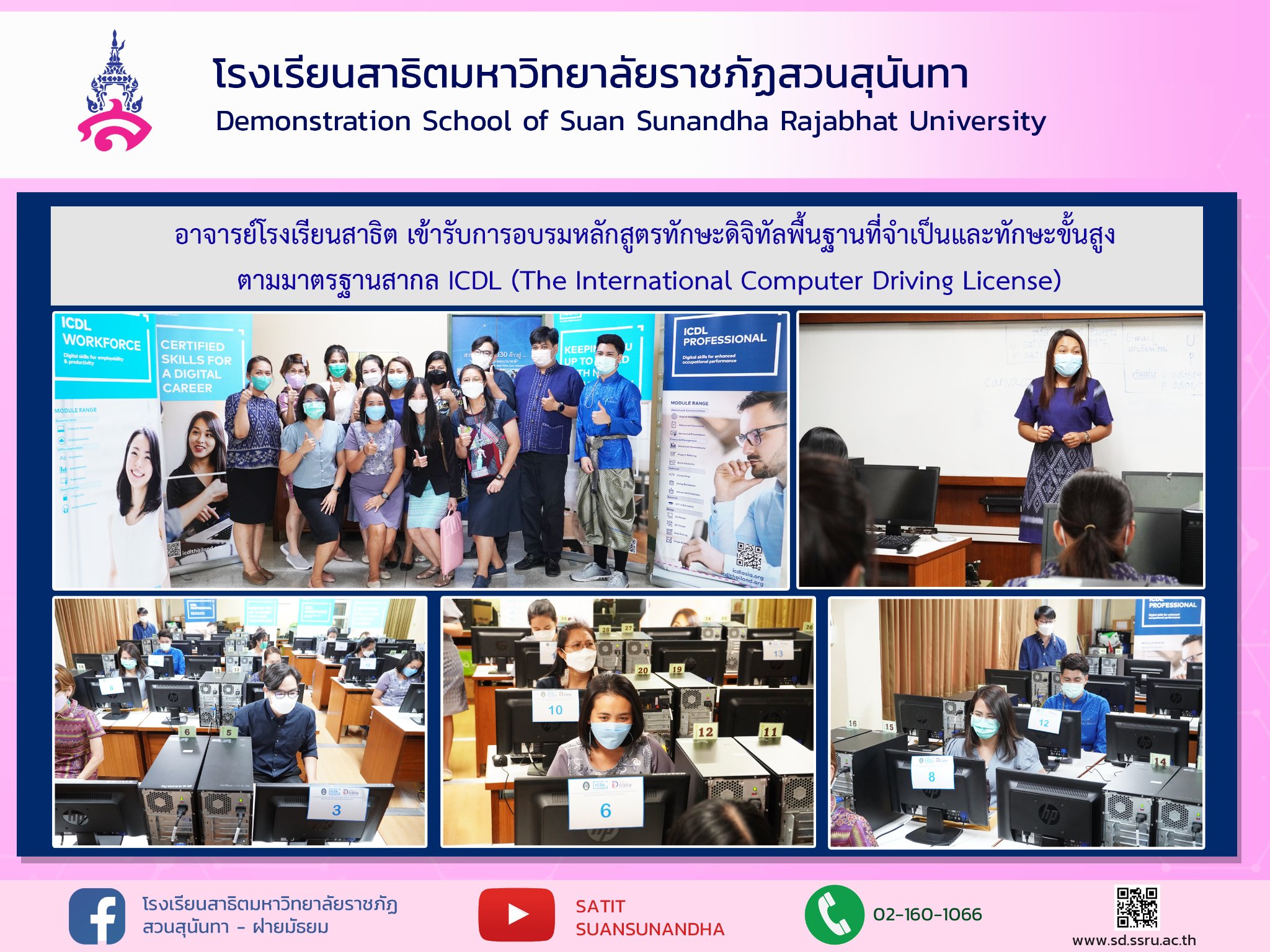 อาจารย์โรงเรียนสาธิตมหาวิทยาลัยราชภัฏสวนสุนันทา เข้ารับการอบรมหลักสูตรทักษะดิจิทัลพื้นฐานที่จำเป็นและทักษะขั้นสูง ตามมาตรฐานสากล ICDL (The International Computer Driving License) เพื่อพัฒนาศักยภาพบุคลากรดิจิทัลทางการศึกษาในบริบทประเทศไทย ของมหาวิทยาลัยราชภัฏสวนสุนันทา