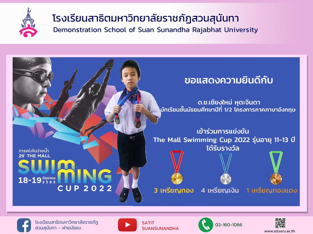 ขอแสดงความยินดีกับ ด.ช.เชียงใหม่ หุตะจินดา นักเรียนชั้นมัธยมศึกษาปีที่ 1/2 โครงการภาคภาษาอังกฤษ เข้าร่วมการแข่งขัน The Mall Swimming Cup 2022 รุ่นอายุ 11-13 ปี ได้รับรางวัล ได้ 3 เหรียญทอง 4 เหรียญเงิน และ 1 เหรียญทองแดง