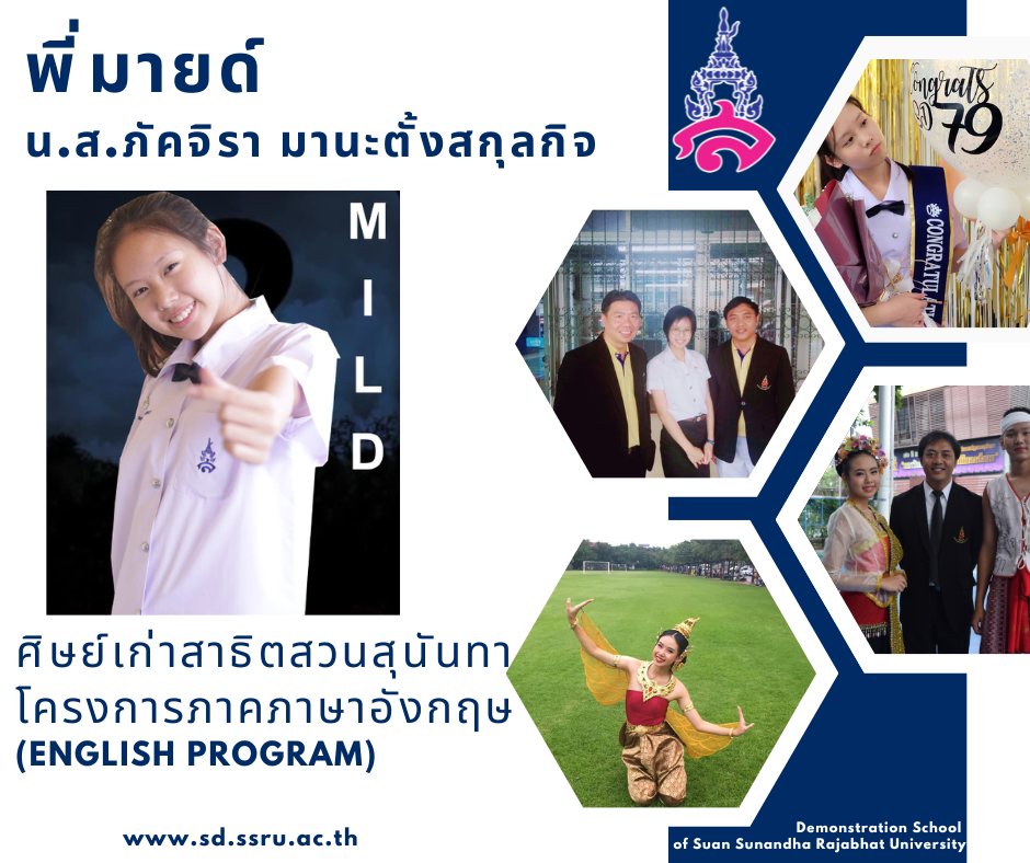 พี่มายด์ หรือ น.ส.ภัคจิรา มานะตั้งสกุลกิจ ศิษย์เก่าโรงเรียนสาธิตมหาวิทยาลัยราชภัฏสวนสุนันทา โครงการภาคภาษาอังกฤษ ปัจจุบันได้รับทุนการศึกษาต่อเต็ม 100 เปอร์เซ็นต์ ที่คณะบริหารธุรกิจนานาชาติ มหาวิทยาลัยอัสสัมชัญ