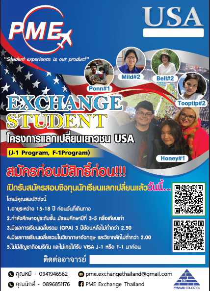 โครงการ PME Exchange Student ร่วมกับโรงเรียนสาธิตมหาวิทยาลัยราชภัฎสวนสุนันทาจัดสอบชิงทุนนักเรียนแลกเปลี่ยนประเทศสหรัฐอเมริกา วันที่ 28 มิถุนายน พ.ศ. 2566 เวลา 15.30-17.00 น. นักเรียนระดับชั้น ม.3-5 ที่สนใจสมัครได้ตามลิงค์นี้ค่ะ https://forms.gle/FG4bX8GSc3vR5uJSA