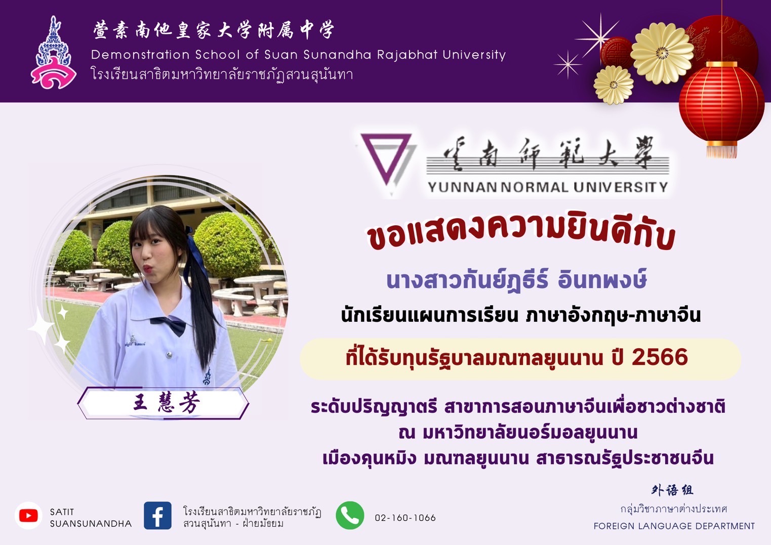 คว้าทุนรัฐบาลมณฑลยูนนาน